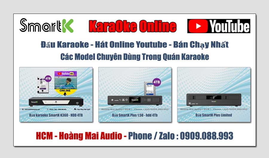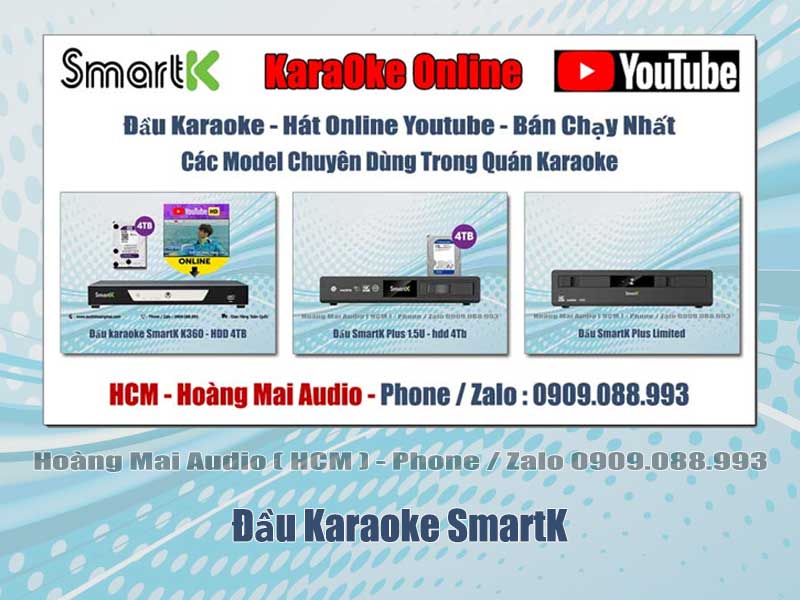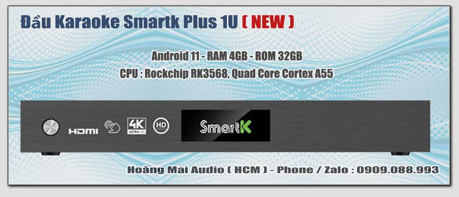 Trang chủ Sản Phẩm Karaoke Đầu Phát Karaoke Đầu Karaoke SmartK Đầu Karaoke SmartKĐầu Karaoke SmartK✓ Hàng Chính Hãng ... ✓ Giá Tốt ... ✓ Giao Hàng Toàn Quốc • Đầu SmartK Plus 1U• Đầu SmartK K360• Đầu SmartK Plus 1.5U• Đầu SmartK Plus Limited• Màn Hình Cảm Ứng SmartK Tình trạngmới 100%Xuất xứchính hãngBảo hành12 tháng . Flash Sale : 6.500.000 đ • Liên Hệ Nhận Giá Tốt Nhất Cho Từng Thời Điểm ➠ Hoàng Mai Audio ( HCM ) ... ➠ Giao Hàng Toàn Quốc Hoàng Mai Audio - HCMHotline : 0909.088.993 ( phone / zalo ) 171 Bùi Hữu Nghĩa - P.Gia Định ( P.1 Bình Thạnh ) - TP.HCM • Giao hàng : - TP.HCM : giao hàng miễn phí - có phí ( xem )- Ngoài TP.HCM : cọc ➢ ship ➢ thu COD + phí ship ( xem ) 💬 Chat ZaloGiải Pháp Hỗ Trợ Nhanh Chóng Đặt HàngGiao Tận Nơi hoặc Nhận Tại Cửa Hàng CHI TIẾT SẢN PHẨMXem Thêm Nội DungCó thể bạn quan tâmĐầu SmartK Plus 1.5U , hdd 4Tb