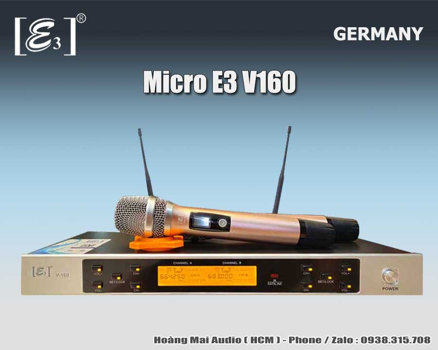 Trang chủ Sản Phẩm Karaoke Micro Karaoke Micro E3 V160Micro E3 V160 . Tình trạngMới 100%Xuất xứGermany - ChinaBảo hành12 tháng Khuyến Mãi : ➠ Tặng 4 pin sạc + sạc • hàng chính hãng• đơn vị tính : bộ• giao hàng toàn quốc Giá bán : 4.500.000 đ • mua hàng , đặt hàng với giá mới và tốt nhất qua chat Zalo , Viber 💬 Chat Zalo Hỗ Trợ Nhanh Qua Chat Zalo 💬 Chat ViberHỗ Trợ Nhanh Qua Chat Viber Hoàng Mai Audio - HCM nơi bán Micro E3 V160 hàng chính hãng , giá tốt , giao hàng toàn quốc . Hoàng Mai Audio - HCMLiên Hệ : 0909.088.993 - 0938.315.708171 Bùi Hữu Nghĩa - P.Gia Định ( P.1 Bình Thạnh ) - TP.HCM • Giao hàng : - TP.HCM : giao hàng miễn phí - có phí ( xem )- Ngoài TP.HCM : cọc ➢ ship ➢ thu COD + phí ship ( xem ) Đặt HàngGiao Tận Nơi hoặc Nhận Tại Cửa Hàng CHI TIẾT SẢN PHẨMXem Thêm Nội DungCó thể bạn quan tâmMicro DB M2 Micro DBacoustic K4000 Micro DBacoustic DB350 Plus V2 Micro DP Audio Micro Aplus A999 Micro CAVS S5 Micro Morgan Sound MG35 Micro LEQI EM 1000