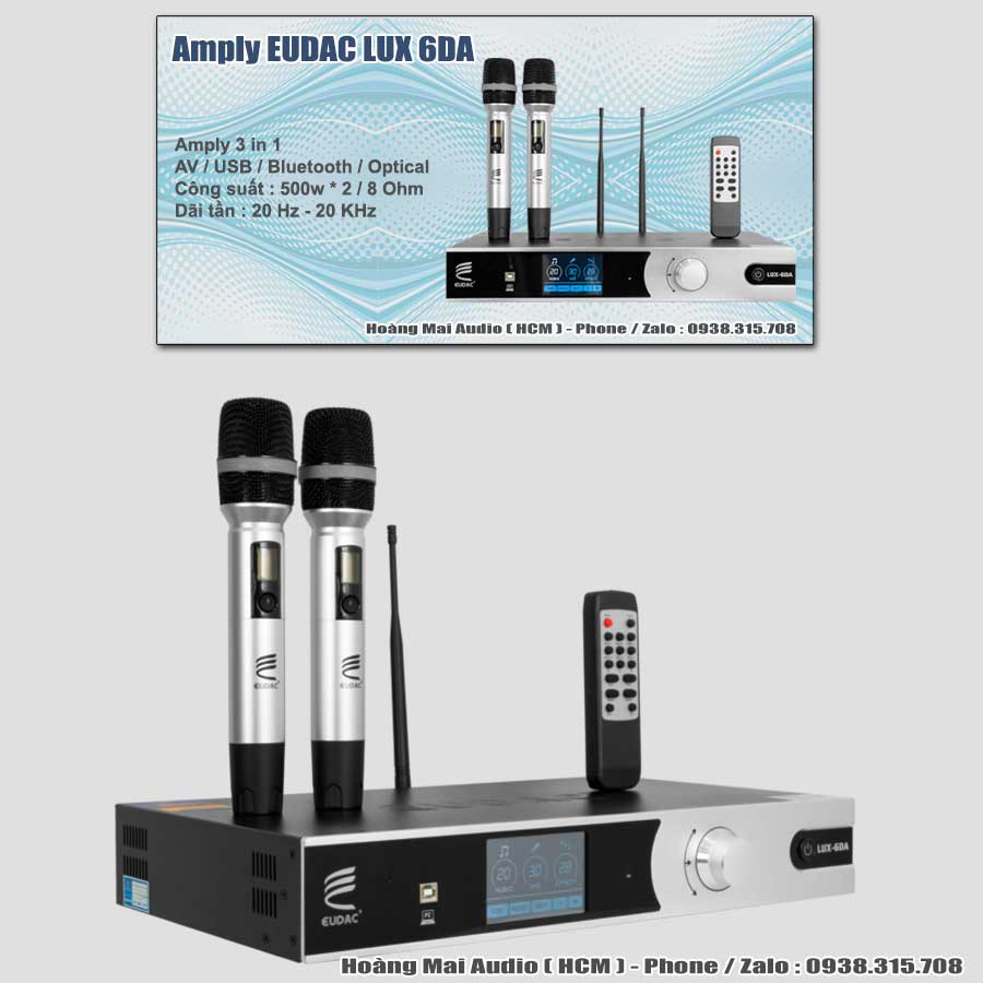 Trang chủ Sản Phẩm Karaoke Vang Cơ - Vang số - Mixer Amply EUDAC Audio LUX 6DA ( 3 in1 )Amply EUDAC Audio LUX 6DA ( 3 in1 ) .16.990.000 đ Tình trạngmới 100%Xuất xứGermany - ChinaBảo hành12 tháng ➠ On Sale : liên hệ giá tốt• hàng chính hãng • đơn vị tính : cái• giao hàng toàn quốc Flash Sale : [ ☎ ] • mua hàng , đặt hàng với giá mới và tốt nhất qua chat Zalo , Viber 💬 Chat Zalo Hỗ Trợ Nhanh Qua Chat Zalo 💬 Chat ViberHỗ Trợ Nhanh Qua Chat Viber Hoàng Mai Audio - HCM nơi bán Amply EUDAC Audio LUX 6DA ( 3 in1 ) hàng chính hãng , giá tốt , giao hàng toàn quốc . Hoàng Mai Audio - HCMLiên Hệ : 0909.088.993 - 0938.315.708171 Bùi Hữu Nghĩa - P.Gia Định ( P.1 Bình Thạnh ) - TP.HCM • Giao hàng : - TP.HCM : giao hàng miễn phí - có phí ( xem )- Ngoài TP.HCM : cọc ➢ ship ➢ thu COD + phí ship ( xem ) Đặt HàngGiao Tận Nơi hoặc Nhận Tại Cửa Hàng CHI TIẾT SẢN PHẨMXem Thêm Nội DungCó thể bạn quan tâmAmply DBacoustic AK600 Amply DBacoustic LX-H8 Amply EUDAC Audio LUX 8DA ( 3 in1 ) DBacoustic LX DAC8 Cân chỉnh , setup vang số tại nhà Bộ giải mã DBacoustic LX DAC8 Cân bằng + nâng tiếng BIK Crossover DBacoustic CR4.8