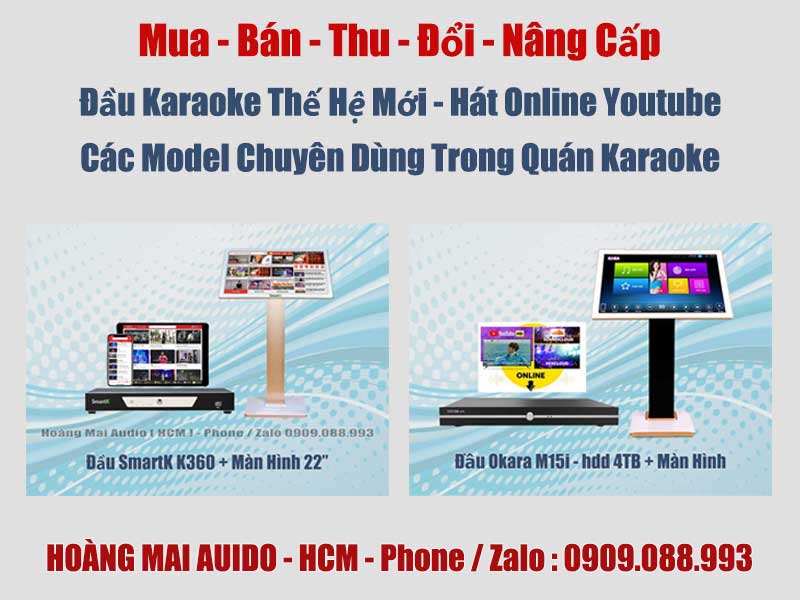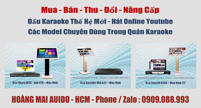 Trang chủ Sản Phẩm Karaoke Mua , bán , thu , đổi , nâng cấp đầu karaokeMua , bán , thu , đổi , nâng cấp đầu karaoke✓ Hàng Chính Hãng ... ✓ Giá Tốt ... ✓ Giao Hàng Toàn Quốc Mua , bán , thu , đổi , nâng cấp đầu karaoke đầu karaoke BTE ,Kara , Okara ,VietK ,VietKTV ,Arirang ,Acnos ,Smark ... Tình trạngmới 100%Xuất xứchính hãngBảo hành12 tháng . Flash Sale : Liên Hệ • Liên Hệ Nhận Giá Tốt Nhất Cho Từng Thời Điểm ➠ Hoàng Mai Audio ( HCM ) ... ➠ Giao Hàng Toàn Quốc Hoàng Mai Audio - HCMHotline : 0909.088.993 ( phone / zalo ) 171 Bùi Hữu Nghĩa - P.Gia Định ( P.1 Bình Thạnh ) - TP.HCM • Giao hàng : - TP.HCM : giao hàng miễn phí - có phí ( xem )- Ngoài TP.HCM : cọc ➢ ship ➢ thu COD + phí ship ( xem ) 💬 Chat ZaloGiải Pháp Hỗ Trợ Nhanh Chóng Đặt HàngGiao Tận Nơi hoặc Nhận Tại Cửa Hàng CHI TIẾT SẢN PHẨMXem Thêm Nội DungCó thể bạn quan tâm